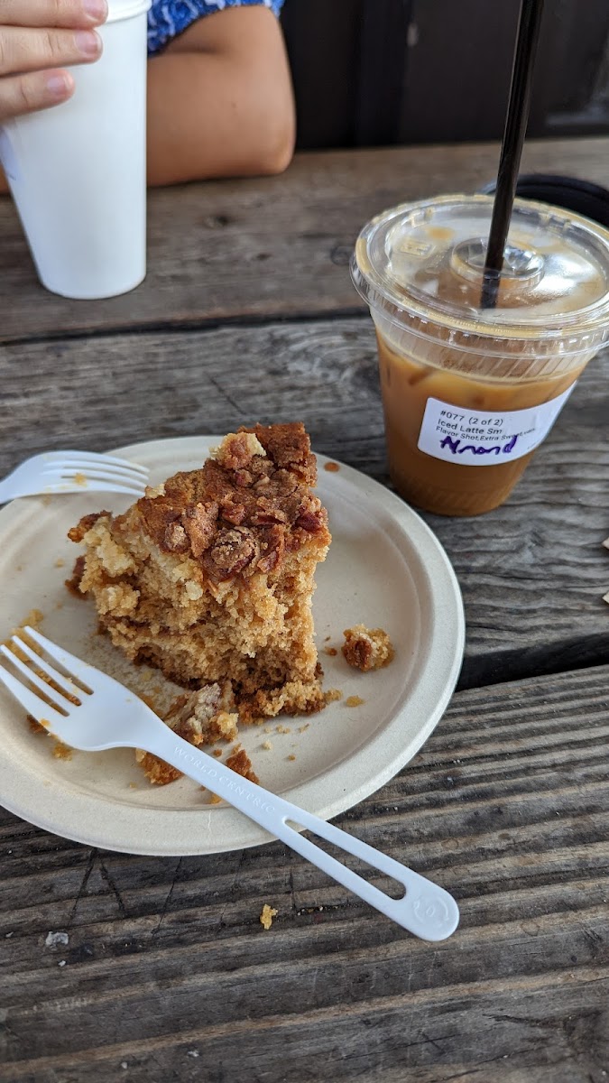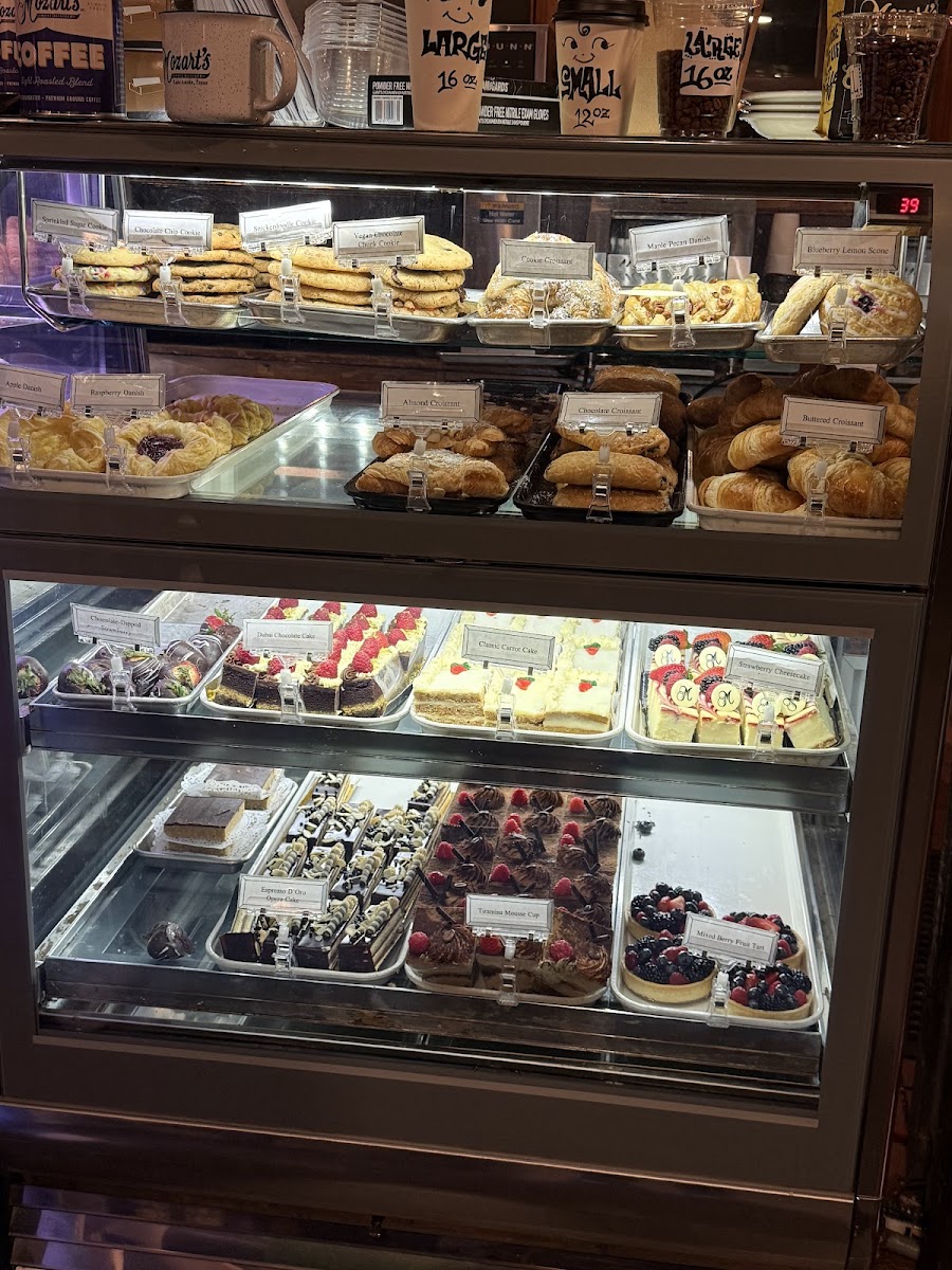 Beautiful spot with a great view of the lake if you want to sit outdoors. The shop itself feels homey. Great for a little date! I got the seasonal cinnamon latte, peppermint choco cupcake, chicken empanada, and the sausage pretzel kolache. All tasted great and would get again. I was most impressed with the choco cupcake, the cake portion was so moist and delicious! Best cupcake I've had in a while. I took off a star because there isn't a lot of parking out front. We ended up having to do street parking